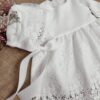 Sukienka Angel to idealna propozycja dla dziewczynki w tak ważnym dniu jakim jest chrzest czy też roczek. Sukienka może być na krótki lub długi rękaw. Piękna koronka znajduje się przy ramionach jak i na dole sukienki. Z tyłu zapinana jest na zamek. Wykonana z tkaniny mięsistej, delikatnej, nie gniecie się, w środku podszyta bawełną.