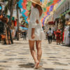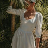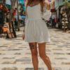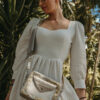 Sukienka damska Lilia, sukienka w rozmiarach S-XL, może być w 3 wersjach długości sukienki: mini (tak jak na zdjęciu), midi oraz maxi oraz z rękawem krótkim (taki do łokcia) bądź długim (takim jak na zdjęciu). Wykonana z muślinu bawełnianego, 4 kolory do wyboru: ecru oraz szminkowy róż w złote drobinki, biel śnieżnobiała i śmietankowa.