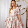 Sukienka damska Peonia, sukienka w rozmiarach XS-XL ( z listy wybierz rozmiar, ktory nosisz na co dzień, a w uwagach podaj wymiary), może być w 2 wersjach długości sukienki: mini (tak jak na zdjęciu), midi. Sukienka luźnego kroju, oversize, z tyłu ma gumeczkę, która ściąga z przodu guziki, można w niej też z łatwością karmić piersią. Może mieć krótki rękaw do łokcia lub długi do nadgarstka.