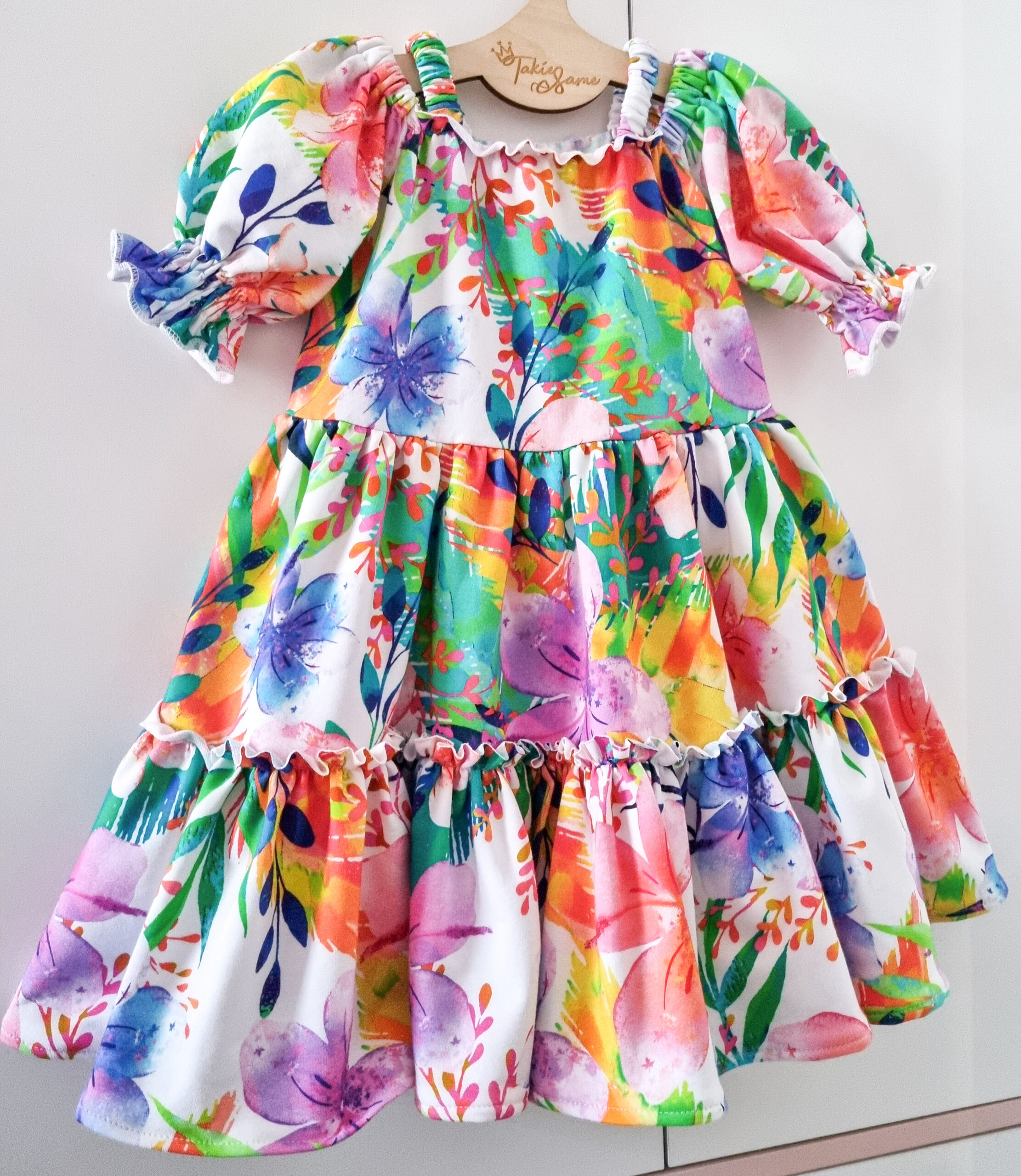 Sukienka dziecięca Hiszpanka wykonana z bawełny sukienkowej premium, lużnego kroju, typu oversize.