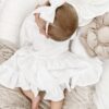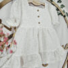 Sukienka dziecięca Muślinowa w 4 kolorach, luźnego kroju, typu oversize, zapinana na guziczki kokosowe, guziczki mogą być z przodu lub z tyłu, można nosić ją na dwa sposoby, rękaw wykończony gumką i falbanką.