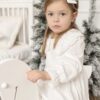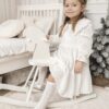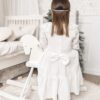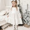 Sukienka dziecięca Muślinowa z koronkowym kołnierzem w bieli śmietankowej, zapinana na zamek.