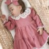 Sukienka dziecięca Muślinowa z koronkowym kołnierzem w pieknym odcieniu różu, zapinana na zamek.