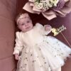 Sukienka dziecięca Muślinowa haftowana z koronką, typu oversize, wiązanie na kokardkę może być z przodu lub z tyłu 🙂
