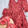 Sukienka dziecięca Serduszka, luźnego kroju, typu oversize, z tyłu wiązana na kokardkę,, rękaw wykończony gumką i falbanką.