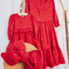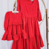 Zestaw sukienek Mama&Córka Muślinowych Drobinki Czerwień