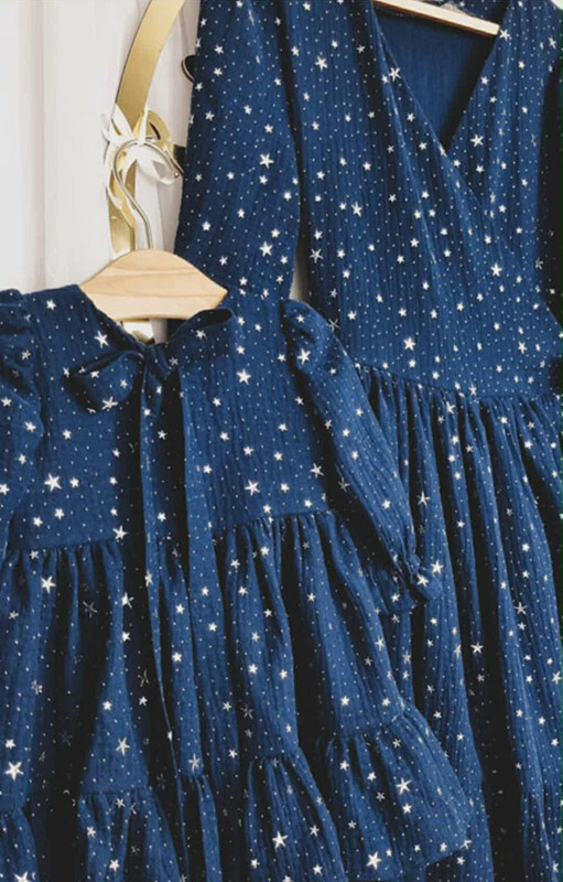 Zestaw sukienek Mama&Córka Muślinowych Gwiazdki Granat