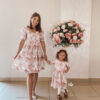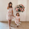 Zestaw Mama&Córka sukienek Peonia, sukienka dla Mamy w rozmiarach XS-XL( z listy wybierz rozmiar, ktory nosisz na co dzień, a w uwagach podaj wymiary), sukienka dla dziecka w rozmiarach 62-152. Sukienka dla Mamy może być w 2 wersjach długości sukienki: mini (tak jak na zdjęciu) oraz midi. Zarówno sukienka dla dziecka jak i dla mamy może być w dwóch wersjach rękawa: krótki przed łokieć oraz długi do nadgarstka. Sukienka dla dziecka typu oversize, guziczki mogą być z przodu i z tyłu, sukienka dla Mamy z guziczkami z przodu, z łatwością można karmić piersią, z tyłu ściągnięta gumką, więc góra nie będzie zupełnie dopasowana:)